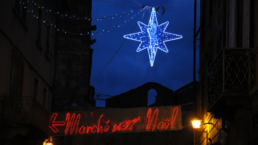 Oltre alle casettine di legno, che quest’anno saranno a tema “Di gusto in gusto, Sapori del Trentino”, ci sono le luminarie che illuminano i vicoli del borgo.